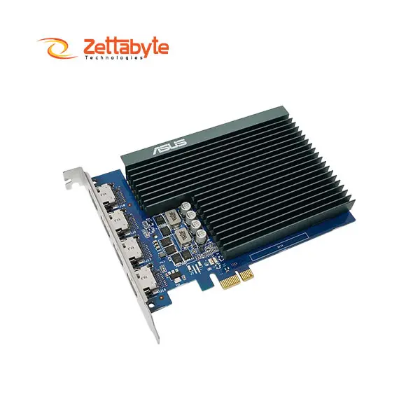 This low-profile GFX supports Quad Display interface with four HDMI ports and a maximum resolution of 3840 x 2160, which really helps professionals who handle more than one monitor or need video playback or digital signage. It benefits from the use of a passive heatsink optimized for silent and efficient operation, making it well-suited for quiet PC builds and compact systems.
