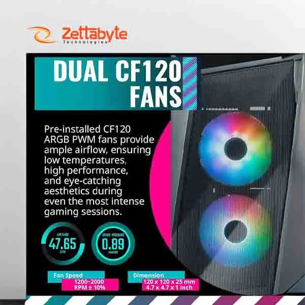 This mini tower casing supports Micro ATX and Mini ITX motherboards and comes with two preinstalled ARGB fans for attractive lighting and airflow Tempered glass side panel allows clear view of internal hardware making it ideal for stylish PC builds.