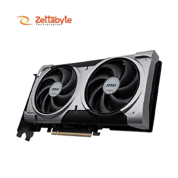 Built on MSI’s Duel Fan cooling with STORMFORCE design, this GPU is equipped with a metal backplate that helps keep the card among the coolest and the quietest during the heaviest loads The Zero Frozr technology lets the fans come to a halt at lower temperatures providing silent operation The GPU has support for Quad Display through 1 HDMI and 3 DisplayPort outputs with the capability of delivering up to 8K at 120Hz or 4K at 480Hz through HDMI 2.1b, which is the latest support rarer PCIe 5.0 and power connection of a single 8 pin socket with a recommended PSU of 600W