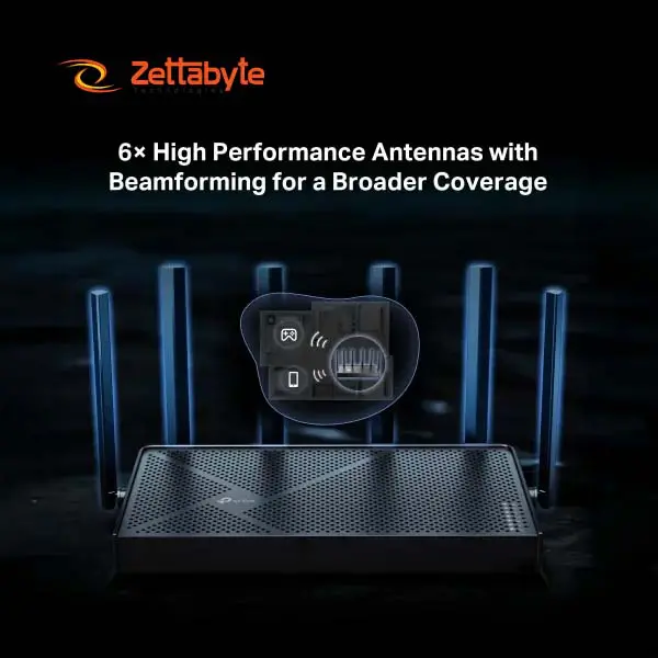 Equipped with 6 high performance external antennas with beamforming 1× 2.5 Gbps LAN and 3× Gigabit LAN ports this router provides wide coverage strong signal WPA3 security and advanced TP Link HomeShield protection for stable networking.