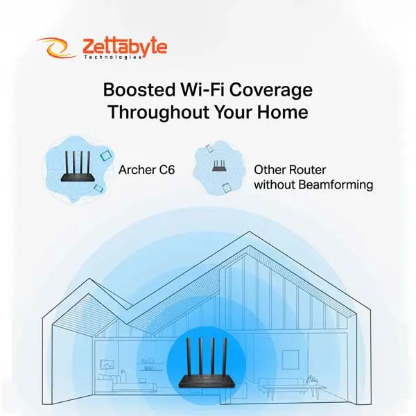 The C6 offers 4 external antennas - with Beamforming and MU-MIMO technology - that enhance signal stability and improve data transfer rates (making the Router ideal for Smart home devices, Online Classes, and networking work-from-home).