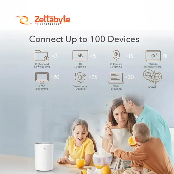 Performance is driven by advanced Dual-Core Processors and 256MB RAM ensuring the Cudy M1800 AX1800 Mbps Gigabit Dual-Band Mesh Wi-Fi 6 System maintains peak efficiency for up to 51 concurrent devices Its four internal omni-directional antennas per node provide deep signal penetration throughout multi-story buildings When you buy Cudy M1800 from Zettabyte you receive two Gigabit ports per unit for ultra-fast wired connections to gaming consoles and smart TVs while enjoying Seamless Roaming that keeps you connected to a single Wi-Fi name across the local Bangladesh market.